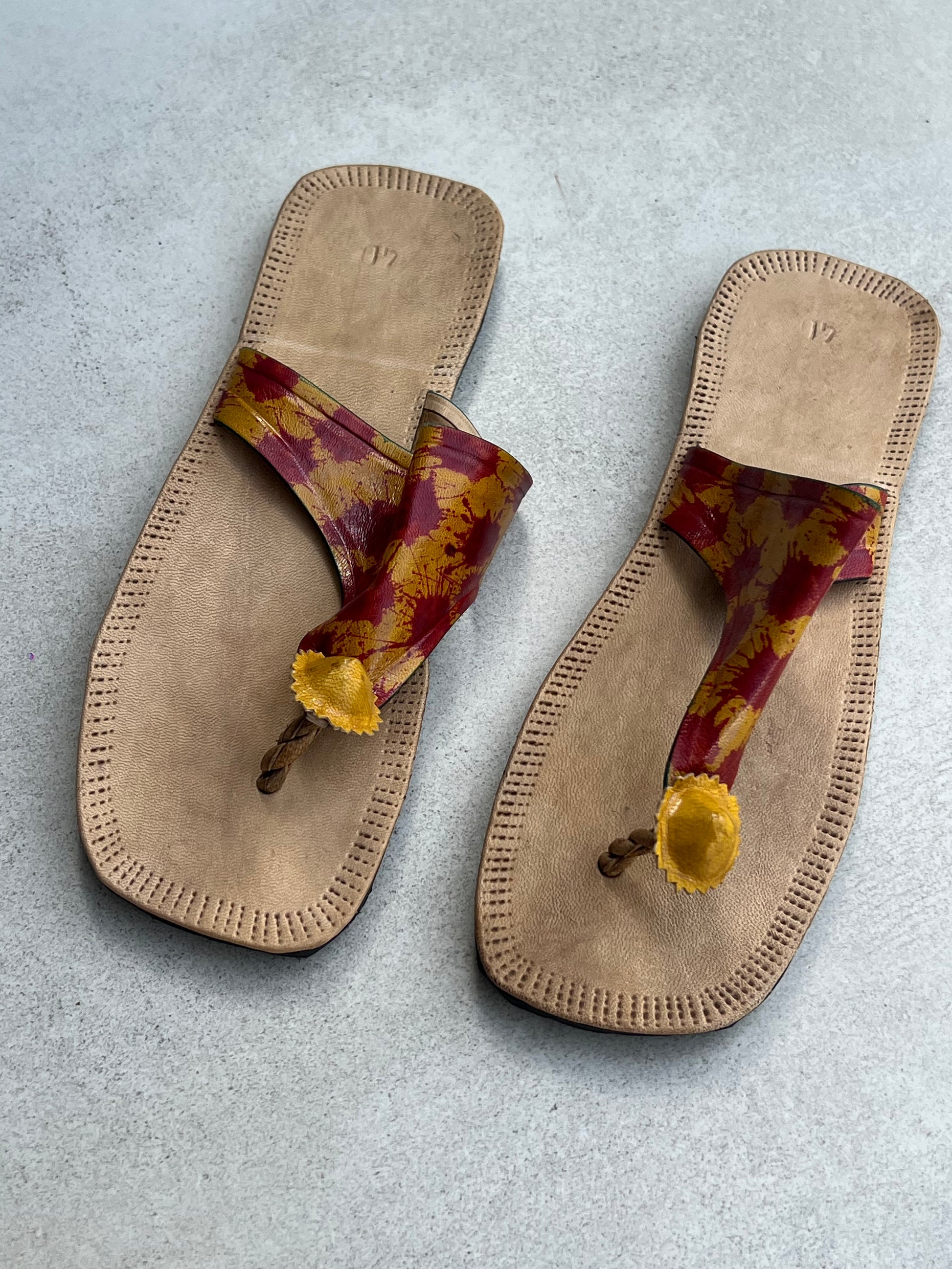 Magnifique paire de sandale femme en cuir jaune / rouge, taille 40