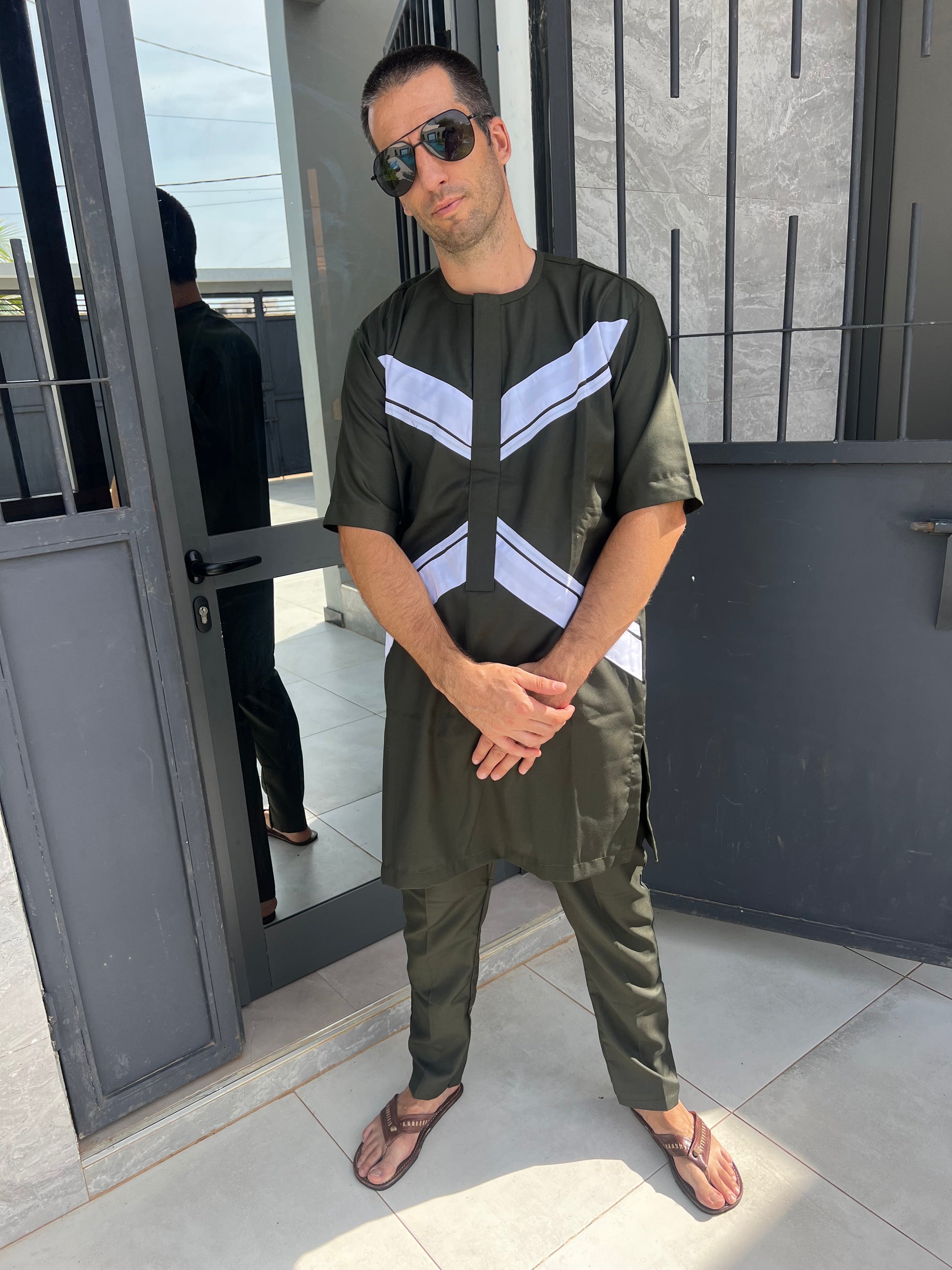 Magnifique costume traditionnel africain 2 pièces couleur verte